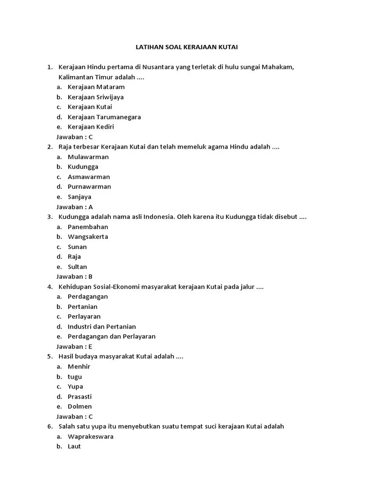 Contoh Soal Pilihan Ganda Tentang Kerajaan Kediri Beserta Jawabannya : Soal Pilihan Ganda Tentang Kerajaan Kutai Beserta Jawabannya / Pilihlah salah satu jawaban yang kamu anggap paling benar!